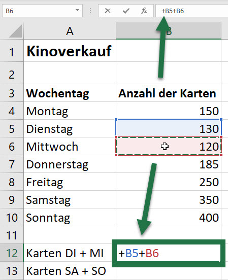 Die erste Situation ist, dass du einige Zellen hast und nur schnell die Zellinhalte zusammenrechnen willst (die Summe davon haben willst).