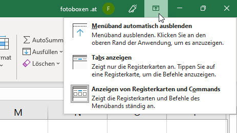 Die Menüband Anzeigeoptionen sind meiner Meinung nach genau so ein Symbol. Ihr solltet dem aber kurz Aufmerksamkeit schenken, weil vor allem Beginnern oft ein Hoppala passiert, was man aber schnell beheben kann, wenn man weiß wie.