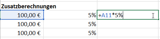 Excel ist ein Tabellenkalkulationsprogramm. Natürlich kann man also in Excel auch mit Prozent rechnen. Wenn die % bereits in einer Zelle stehen, dann ändert sich an der Formel nichts. Man klickt in das Ergebnisfeld, startet die Formel mit + klickt auf die erste Zelle nimmt den Rechenschritt für die Multiplikation (*) und klickt auf die Zelle mit den % Inhalten; bestätigt mit Enter.