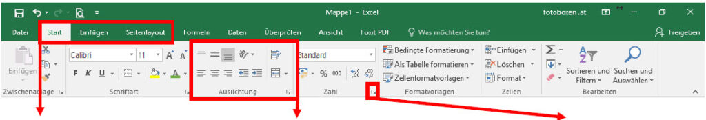 Ausrichtung – hier kann man sagen, ob der Text links, in der Mitte oder rechts stehen soll. Ob Zellen verbunden sein sollen, etc.
