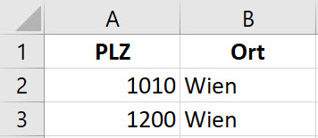 Wenn wir hier PLZ und Ort trennen, können wir auch die Datensätze von Wien später nach der PLZ sortieren oder Filtern.