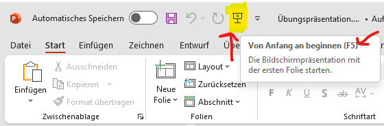 Alternativ können wir auch mit F5 die PrÀsentation starten.