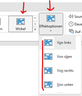 Bei manchen FolienĂŒbergĂ€ngen gibt es auf der rechten Seite dann noch Effektoptionen.