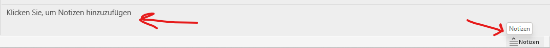 Bei älteren Versionen wird diese automatisch mit eingeblendet, beim neuen Office müssen wir zuerst unten auf Notizen klicken: