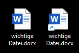 Hier sehen wir einmal die Originaldatei links und einmal die Verknüpfung zur Datei rechts.