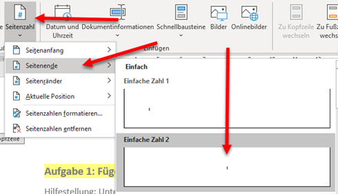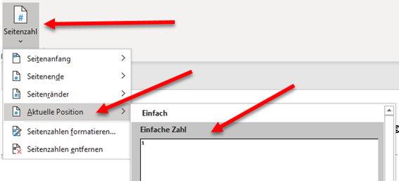 Dann gehen wir oben auf Seitenzahl -> Aktuelle Position -> einfach