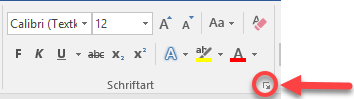 Wenn wir bei der Gruppe Schriftart auf den Launcher (die Zusatzfunktionen) klicken:
