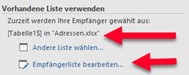 Bei dieser Stelle (Schritt 3/6) vom Seriendruck-Assistenten können wir sagen, dass wir bereits eine vorhandene Empfängerliste verwenden wollen.