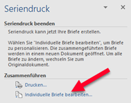 Da wir ein neues Dokument mit allen Briefen erstellen müssen, klicken wir hier auf individuelle Briefe bearbeiten.